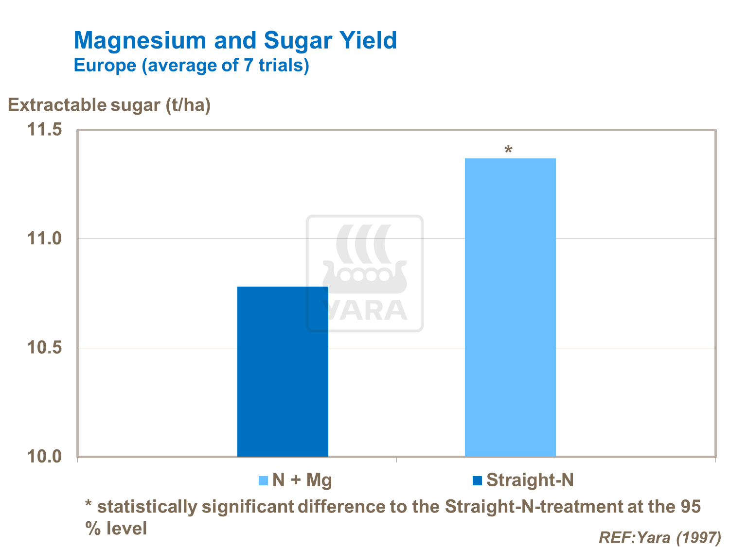 Zbilansowany program nawożenia zawierający magnez prowadzi do zwiększenia plonów buraków cukrowych.