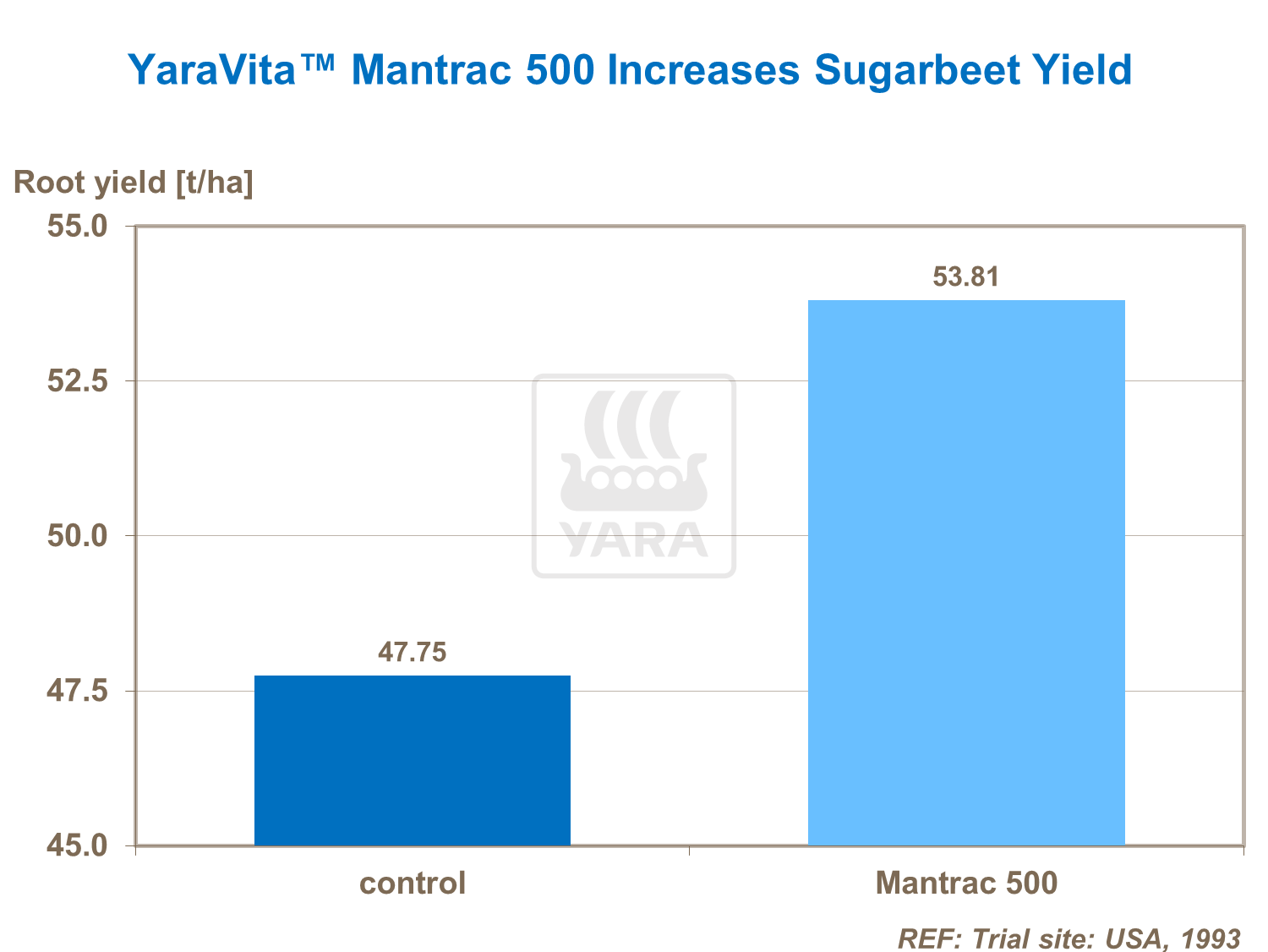 Buraki cukrowe są bardzo wrażliwe na niedobór manganu, dlatego nawożenie manganem przyczynia się do zwiększenia plonów, w szczególności na glebach gdzie dostępność manganu jest niska. Niedobory manganu występują w glebach piaszczystych o niskim CEC, z wysokim pH takich jak np. gleby organiczne, gleby wapienne, gleby suche znajdujące się na skłonie. Niedobory manganu często występują w fazie 2-3 liścia.