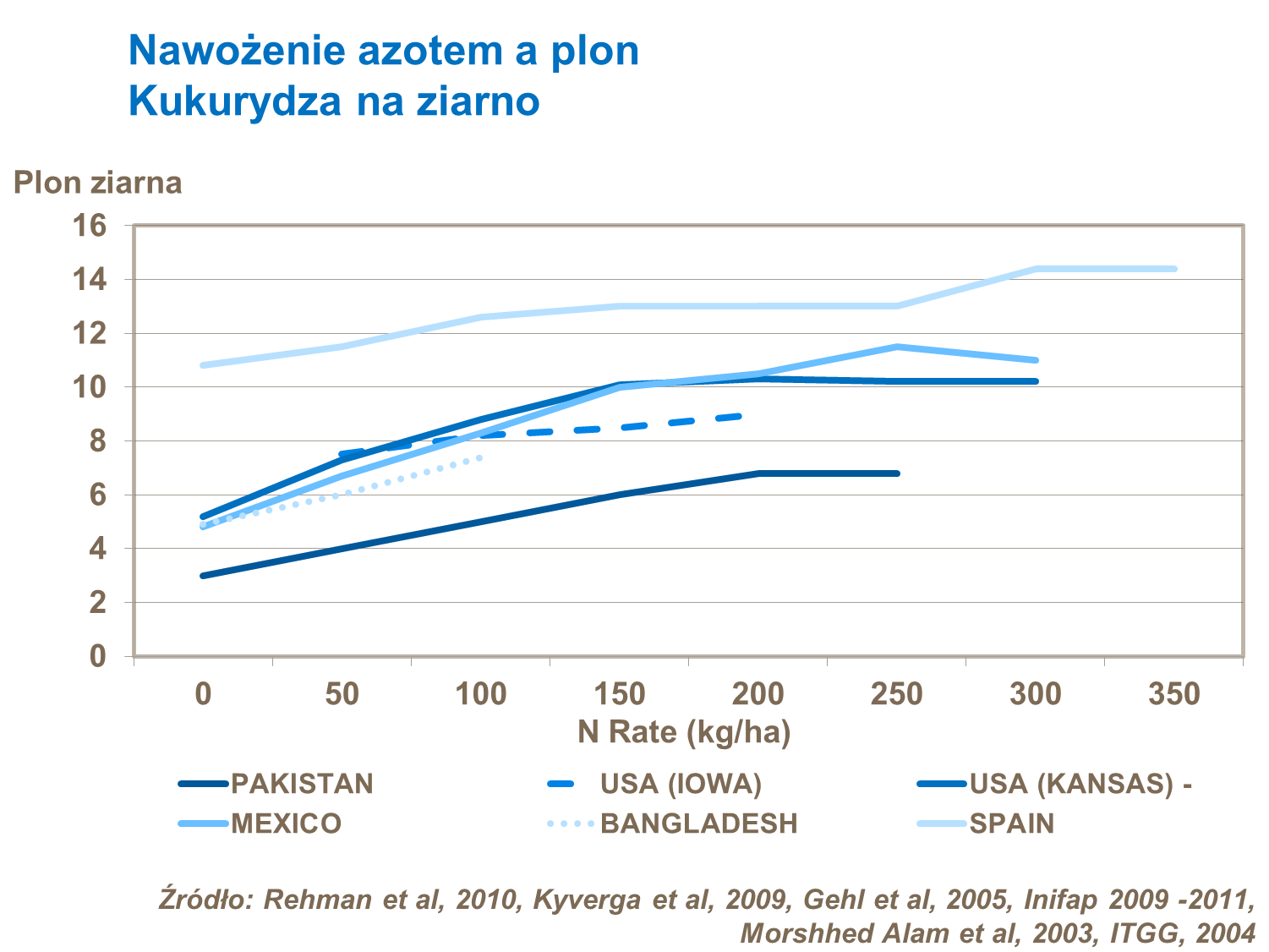 Azot jest podstawowym pierwiastkiem wzrostu roślin, podstawowym budulcem białek. Największe plony ziarna kukurydzy uzyskano, w zależności od stanowiska, kraju, przy dawkach azotu 200-250kg/ha. Wielkość dawek musi być jednak ustalona zgodnie z potencjałem na uzyskanie określonej wielkości plonu, ze zbilansowaniem składnika, który znajduje się w glebie. Niedobór azotu skutkuje wytworzeniem krótkiej kolby z mniejszą liczbą ziaren.
