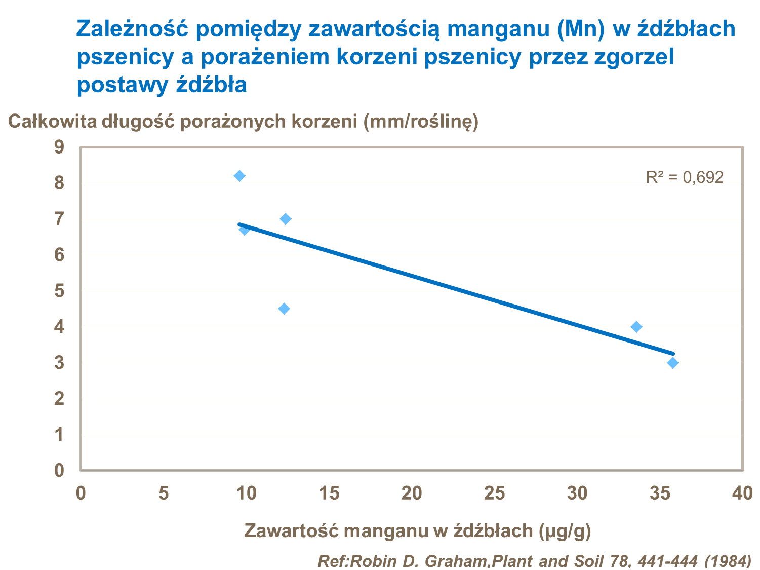 Wpływ manganu na ograniczenie presji chorób został stwierdzony w licznych doświadczeniach. Ma on bezpośredni wpływ na zahamowanie rozwoju chorób grzybowych, szczególnie mączniaka prawdziwego, jak również bierze udział w produkcji ligniny i suberyny, zwiększając tym samym odporność na zgorzel podstawy źdźbła, co potwierdza wiele doświadczeń.