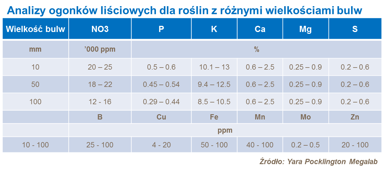 W połowie sezonu wegetacyjnego pobiera się 30-40 ogonków liściowych z pierwszych, najmłodszych w pełni rozwiniętych liści. Ogonki powinny być wymieszane ze sobą i powinny pochodzić z różnych części pola.