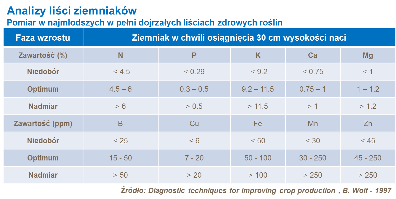 Analiza tkanek roślinnych (niezależnie od tego czy ogonka liściowego czy całego liścia) dokonywana podczas sezonu wegetacyjnego stanowi idealny obraz aktualnego stanu odżywienia roślin i pozwala zdiagnozować niedobory składników, w szczególności mikroelementów.