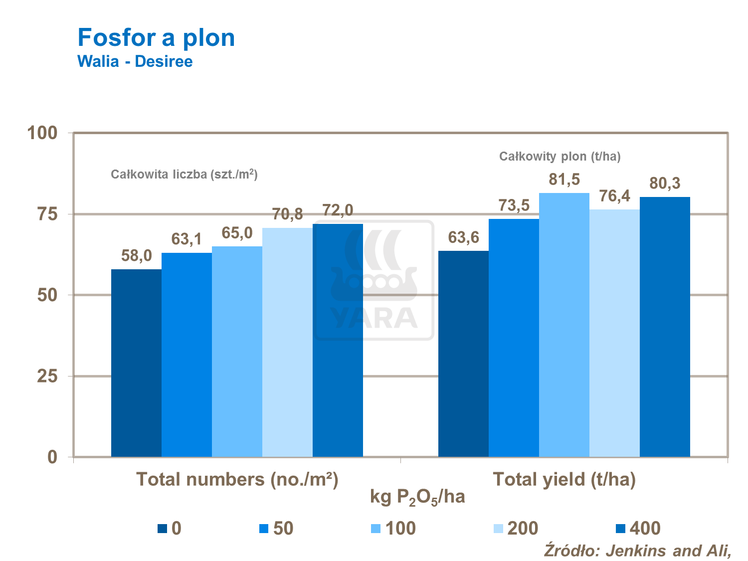 Badania prowadzone w Walii wskazują na wpływ nawożenia fosforem na liczbę bulw oraz plon całkowity bulw.